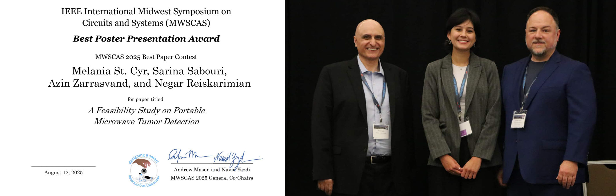 Melania received the best poster presentation award for the work "A Feasibility Study on Portable Microwave Tumor Detection" at the Tuesday poster session at IEEE International Midwest Symposium on Circuits and Systems (MWSCAS) 2025.